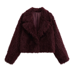 버건디 컬러 하이 패션 디자인 빈티지 캐주얼 통기성 짠 정사이즈 소매 여성의 봄 인조 모피 코트 및 재킷